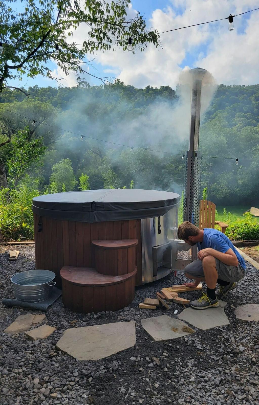 After looking at several types of wood fired hot tubs we chose the SaunaLife S4N. It is the perfect size. It was easy to assemble and heats up quickly. I love the fiberglass liner. It also includes a cover and steps, which are an extra cost on other models.
